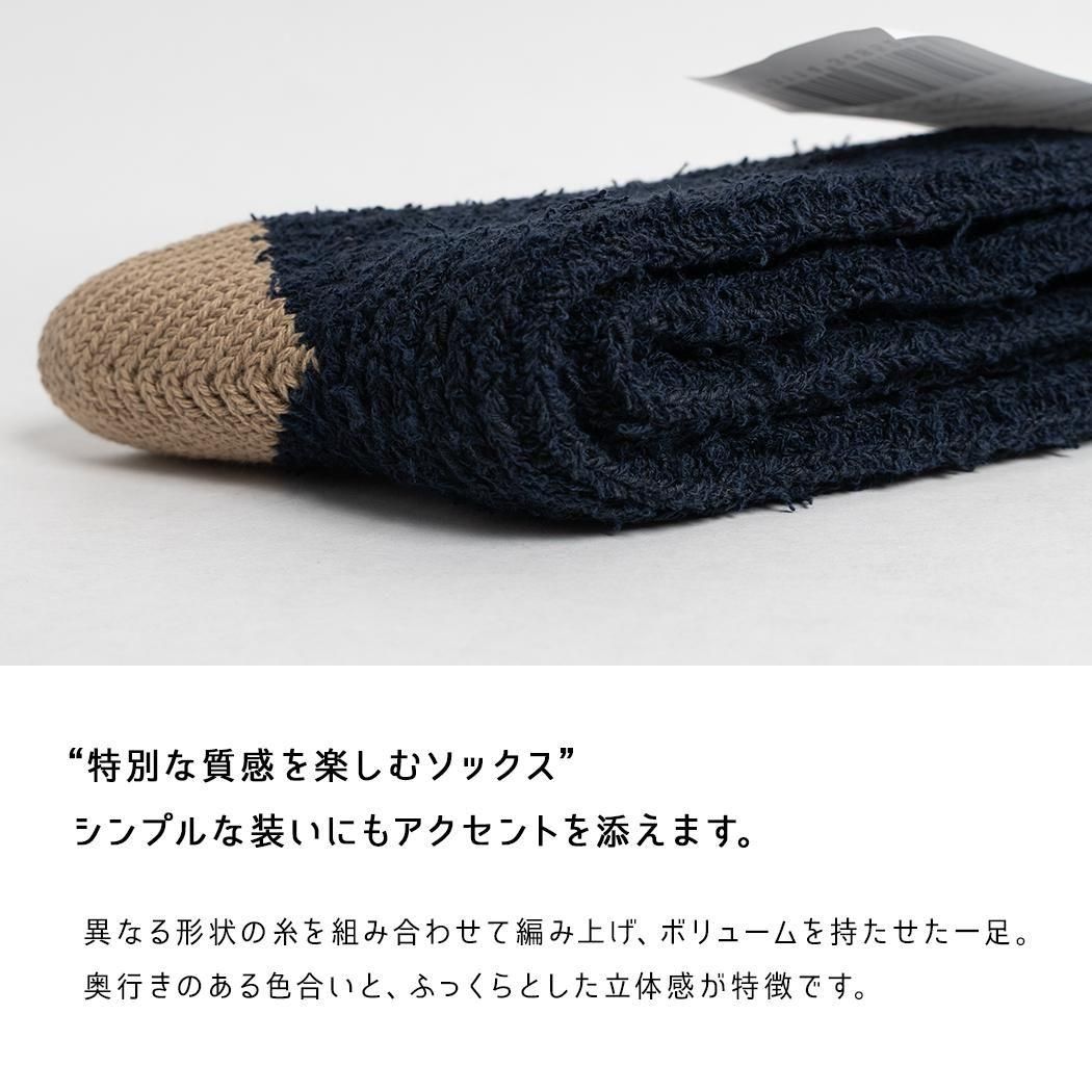 程よいボリュームを持たせ、リブで編むことで、締め付け感を抑えた履き心地に仕上げています。